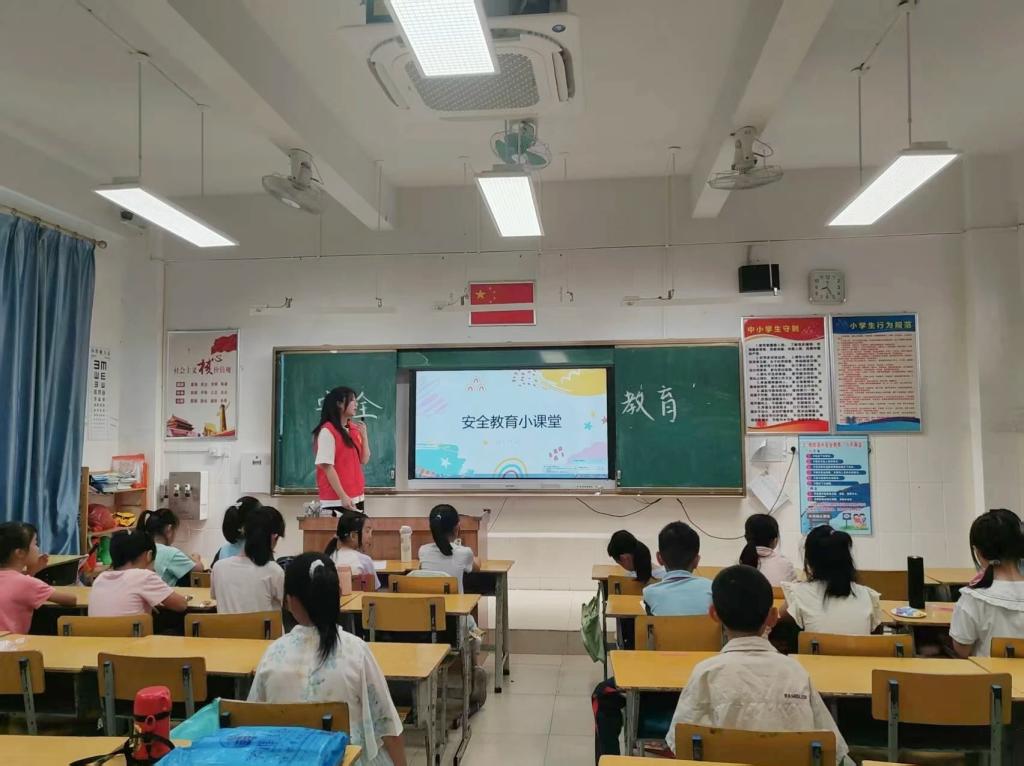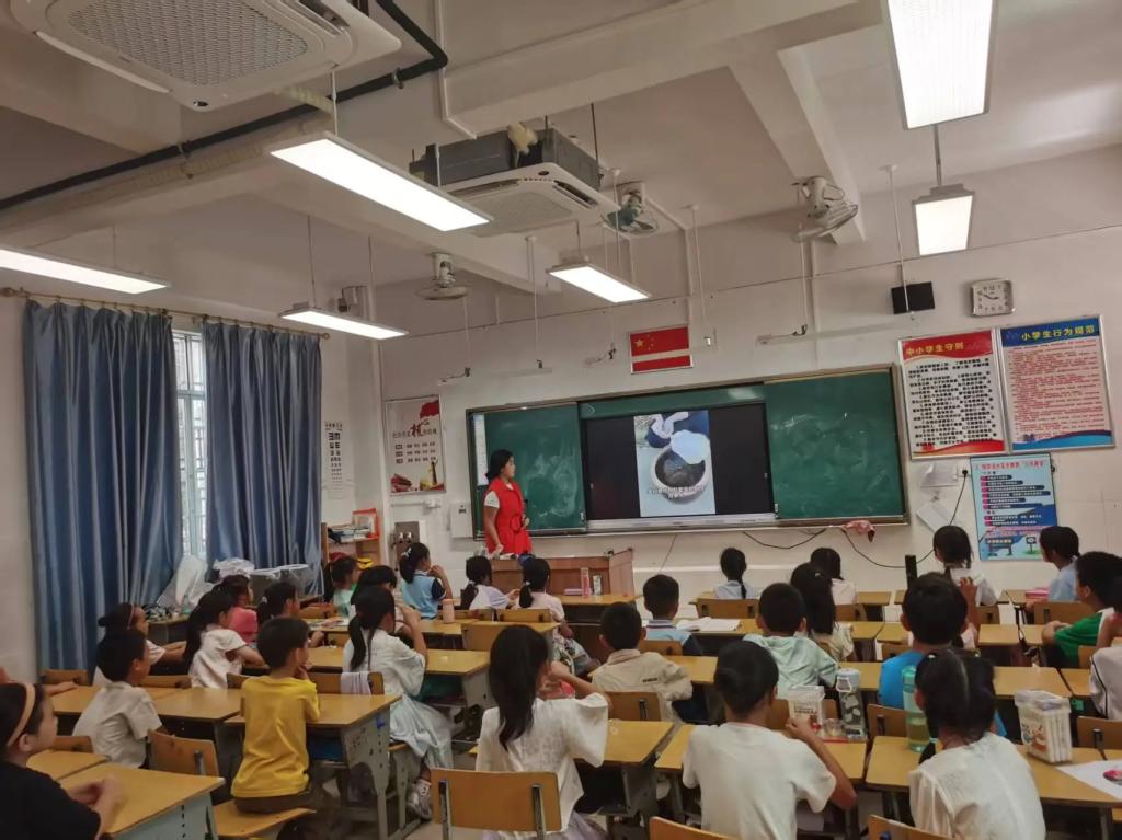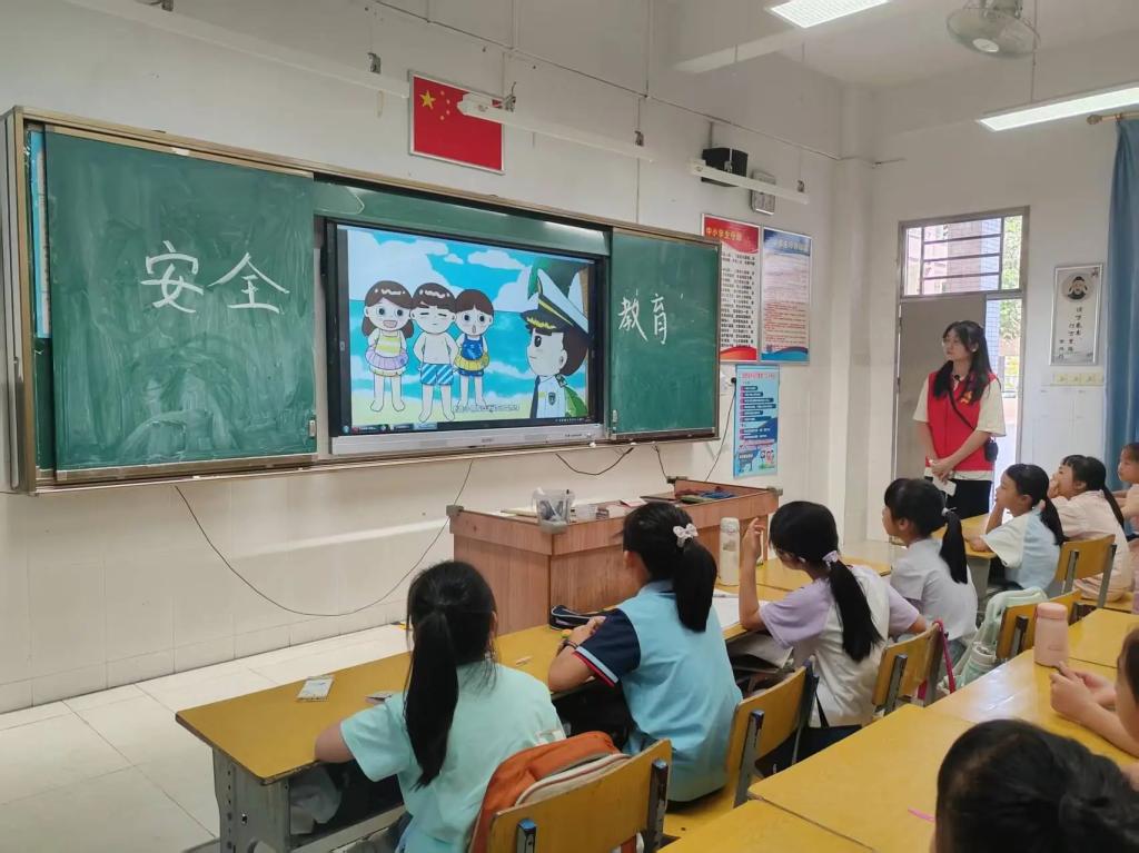 课程以“防溺水”安全教育拉开序幕,队员们详细介绍了“六不”原则;随后通过视频开展交通安全教育;接着以提问的方式引入传染病相关知识,为学生们讲解病毒防范要点,并邀请学生一同演示七步洗手法;最后,借助趣味动画解析食品安全知识。在此次课堂中,学生们学习了基础防范措施,在互动过程中逐步树立起安全防范意识。