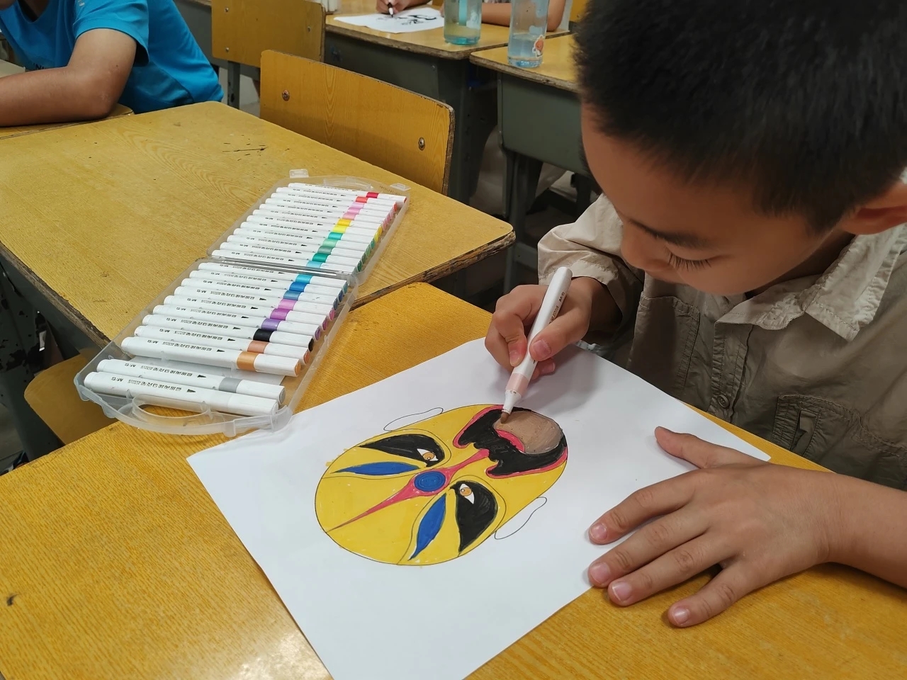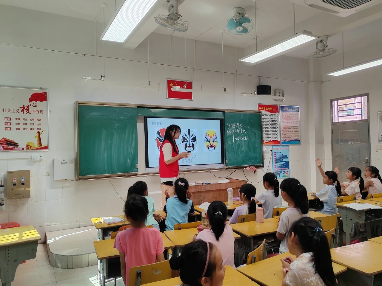 京剧脸谱课围绕着“京剧脸谱”展开学习。队员以“轴对称图形”知识引入京剧脸谱后,通过看视频和提问的方式帮助同学们加深对京剧以及京剧脸谱的了解。在实践环节中,学生们亲手为脸谱涂色,既巩固了数学概念,又感受到传统艺术的独特魅力。