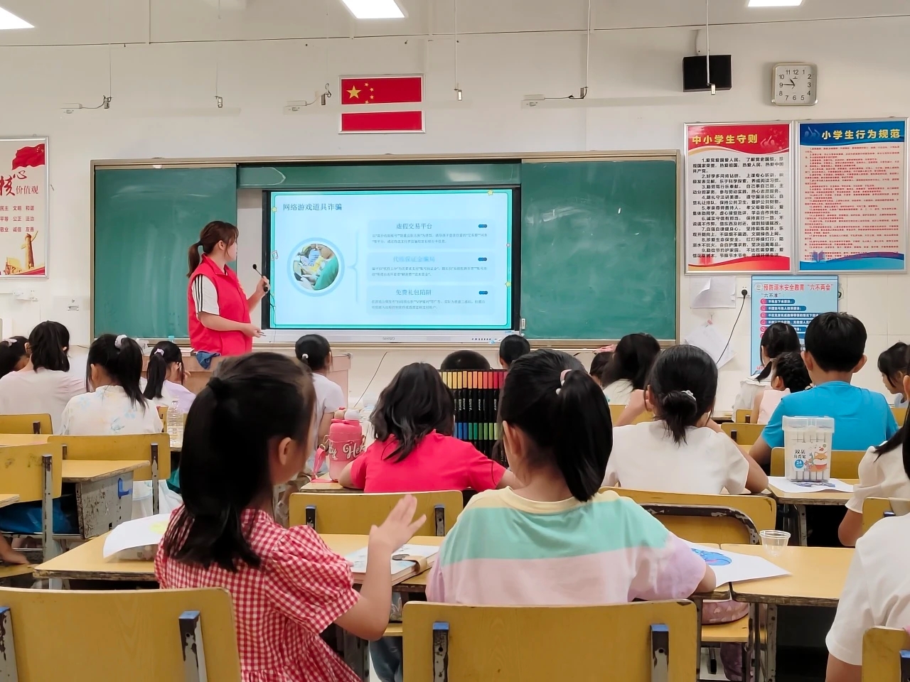 防诈骗课程中,队员们首先介绍了诈骗的基本知识,接着结合日常生活中的典型案例,讲解常见的诈骗手段,并通过提问与同学们积极互动。最后,队员们向学生传授辨别诈骗的技巧以及应对处置的方法。