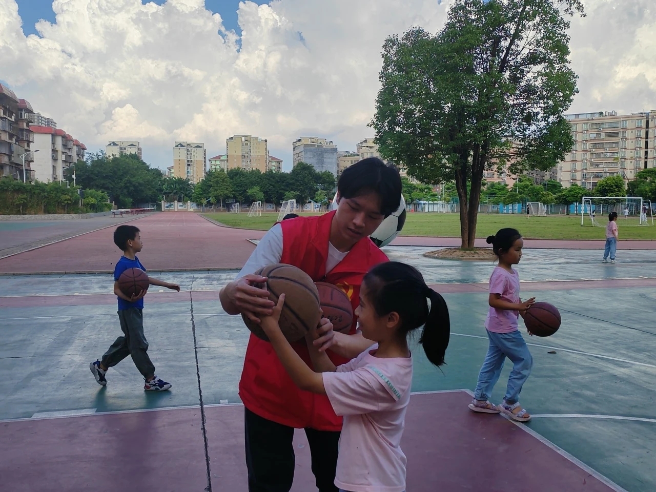 课程开始后,队员迅速组织学生完成热身准备动作,随即展开篮球教学活动。教学过程中,队员从拍球、运球等基础技能讲解切入,逐步引导学生进行投篮练习。通过系统教学,学生不仅掌握了篮球基础技巧,还增强了身体素质,拓展了体育技能。