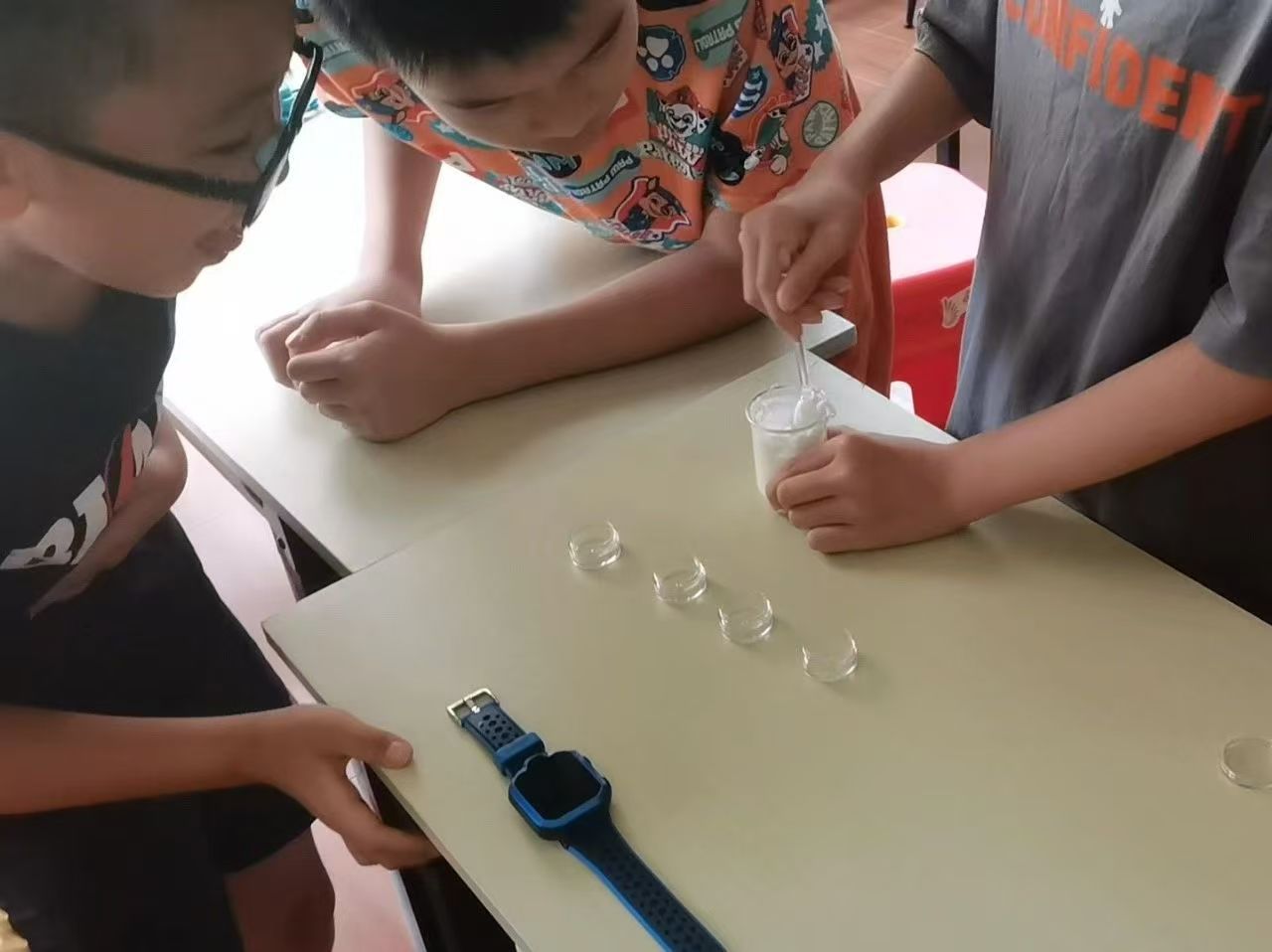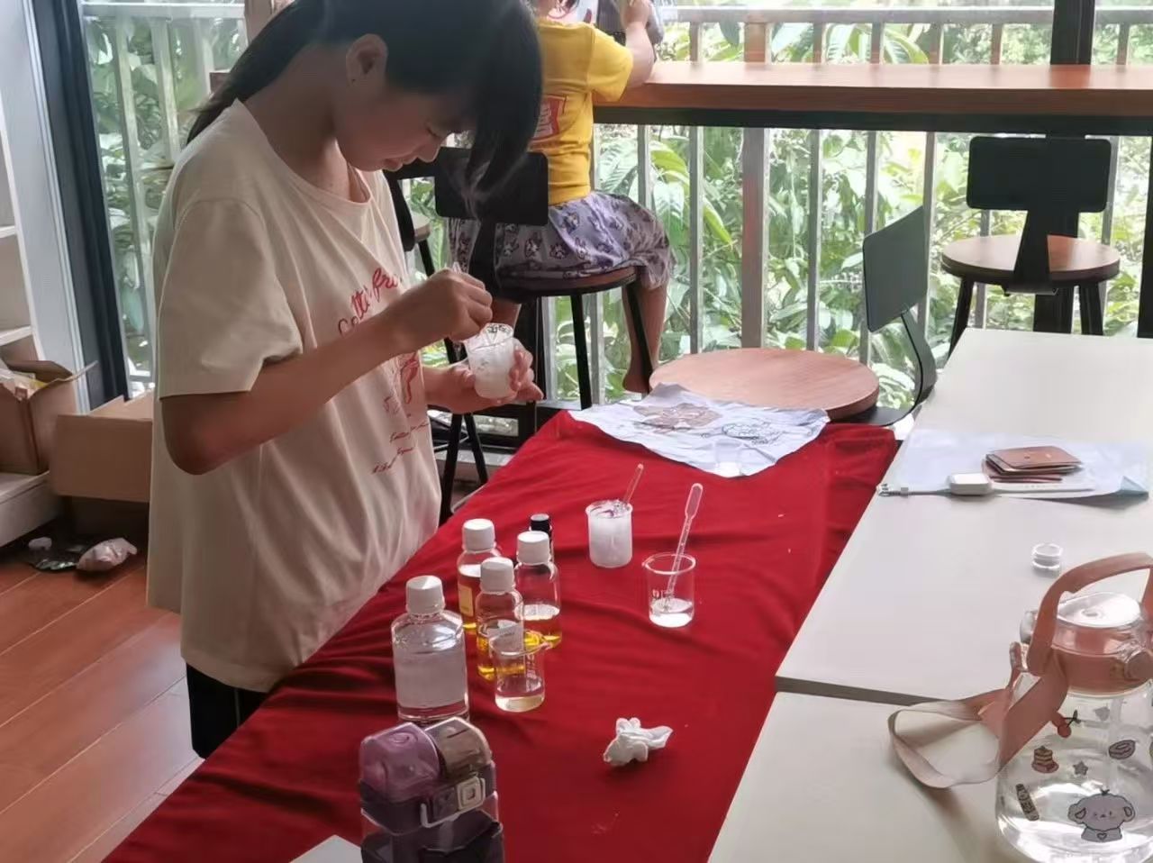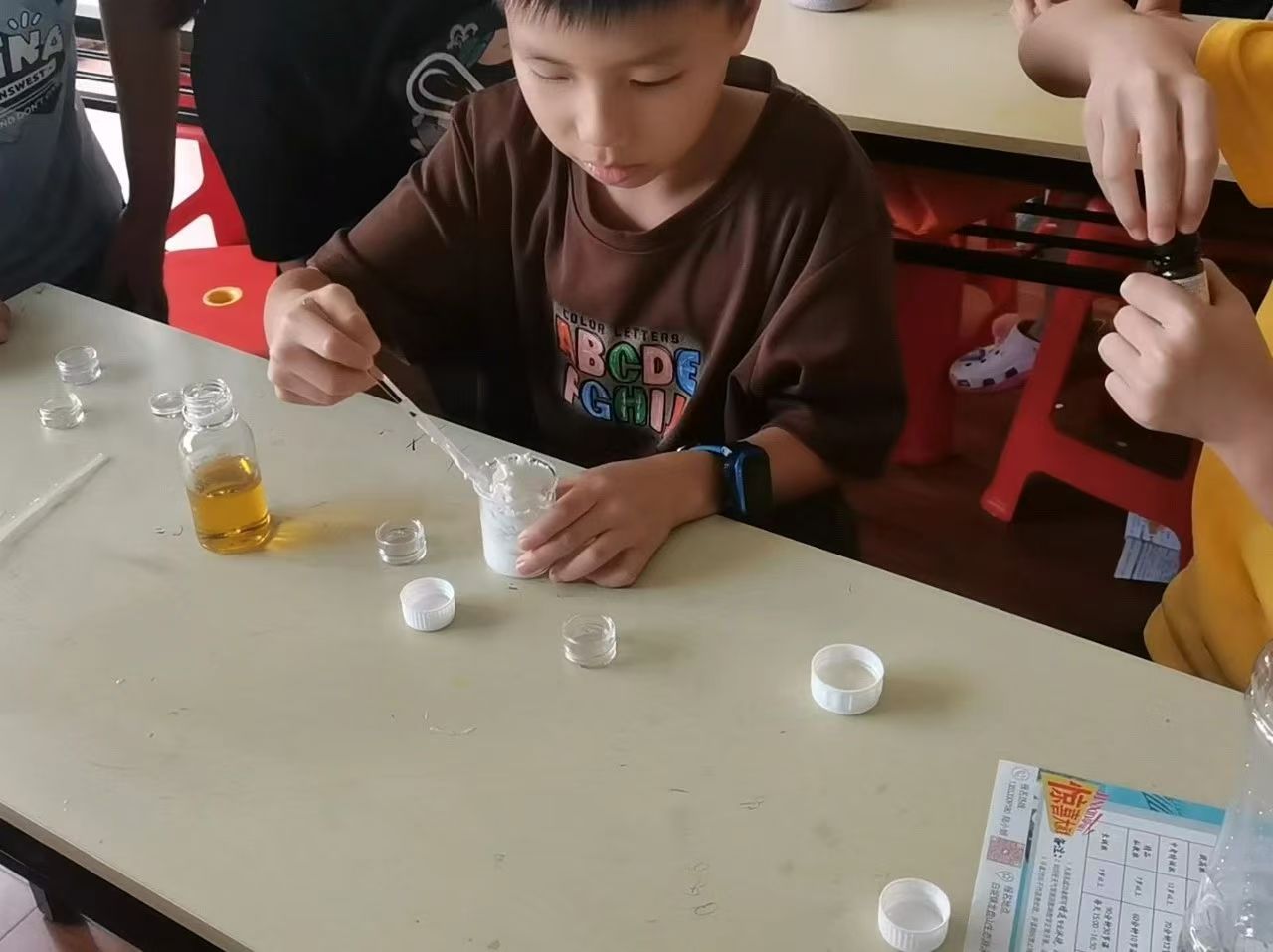 在“自制护手霜”课程上,突击队员先为孩子们讲解护手霜的用处,让他们明白这小小一瓶的神奇功效。接着,突击队员亲自示范制作过程,孩子们看得目不转睛。随后,轮到孩子们大显身手,他们小心翼翼地按照步骤操作,感受着化学试剂在手中奇妙变化。当一瓶瓶充满成就感的护手霜诞生,孩子们不仅收获了实用小物,更在实践中领略到化学的无限乐趣。