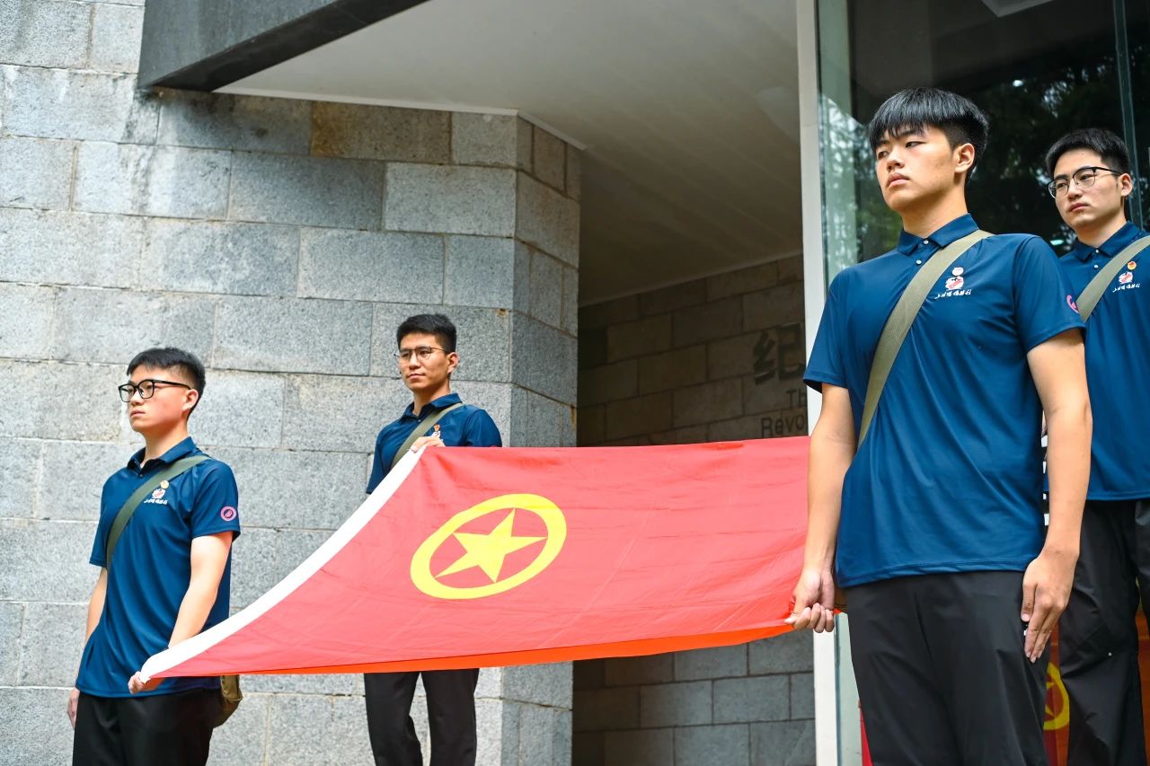 8月7日清晨,广州理工学院“星火金策”实践队集结在全国青少年井冈山革命传统教育基地中心广场上。广场上65所高校的队伍整齐排列,神情肃穆地仰望国旗。这场庄严的升旗仪式,让新时代青年深刻感受到肩负的责任与使命,激励着大家以青春之我,报祖国之恩。