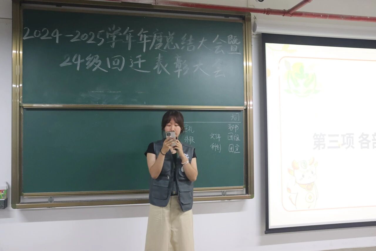 会议最后,对2024-2025学年度优秀志愿者、优秀干事、优秀干部以及优秀部门进行表彰,以肯定他们上学年积极的表现和贡献,同时激励更多学生积极参与团学活动。这一环节不仅是对优秀个人的肯定,也是对全体成员的鼓励。