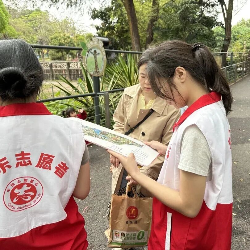 活动当天,志愿者们的身影遍布园区角落:他们主动与游客互动,倾听需求、耐心答疑,以饱满的热情投入每一项工作。真诚的服务不仅为动物园增添了亮丽的青春风景线,更赢得了游客的广泛赞誉,让榜样100的精神底色在实际行动中被看见、被传递。