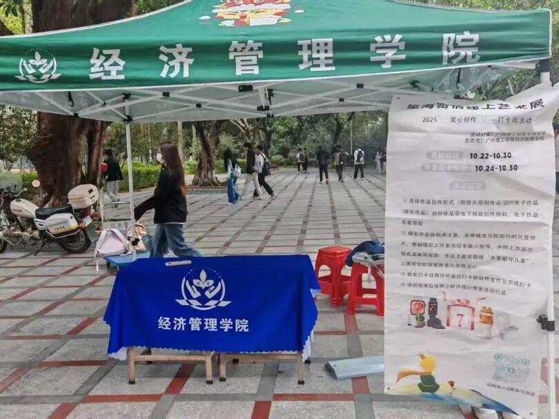 该活动同时设立线下摆摊,现场聚焦宣传发力:我们陈列乡村孩子的生活剪影、活动公益愿景海报,志愿者们耐心向前来咨询的同学讲解活动意义,邀请大家参与线上打卡;摊位上设置“祝福留名墙”,路过的同学写下对乡村孩子的期许,还可领取活动纪念明信片,在面对面的互动中传递公益理念,让“榜样100”的精神被更多人知晓。