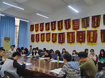 会议中,干部们自我介绍后,由主席团介绍各部门的工作内容,规划后期的工作安排,强调要注意加强部门内部的凝聚力,提高工作效率,积极与其他学院的交流与合作。最后,段妍君书记做总结发言期望在今后的活动中,要加强创新意识,有所突破。干部们积极地规划近期的各项工作,展现了认真负责的工作态度。