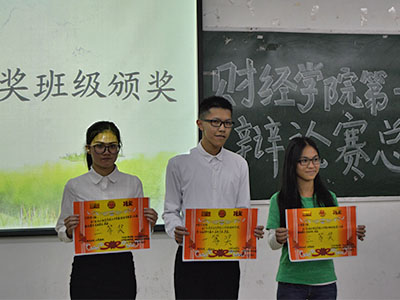 正方选手是来自会计154班以及反方选手是来自经济151班的同学。双方围绕着“大学生炒股利大于弊或弊大于利”的辩题展开激烈辩论,在对战环节中,双方都备战充实,你来我往,互不相让,唇枪舌战,尽显风采。他们缜密的推理逻辑能力,出色的辩驳能力,赢得评委与观众们的阵阵掌声。经过激烈的角逐,会计154班摘得本次比赛的桂冠,经济151班获得二等奖,国贸151班获得三等奖,会计154班的正方三辩罗紫尤获得优秀辩手的称号。
