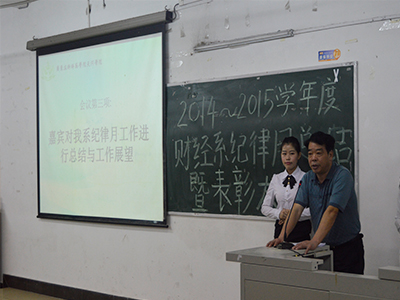 22日晚,我系2014~2015年度纪律月总结暨表彰大会在综合楼举行。党总支书记李伟民、各辅导员老师、以及大一各班学生代表100余参加了此次会议。