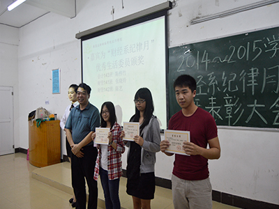 李伟民书记强调对2014年学生会各部门的工作表示充分肯定,由于大家的努力,我系班风、系风有聊明显的好转,给同学们提供了一个良好的学习和生活环境。同学们要提高自律性,加强自我教育、自我管理、自我成才意识。大会对获得优秀早自习班级、优秀晚自习班级、优秀纪律委员、优秀课室卫生班级、优秀生活委员进行了颁奖,以资鼓励。