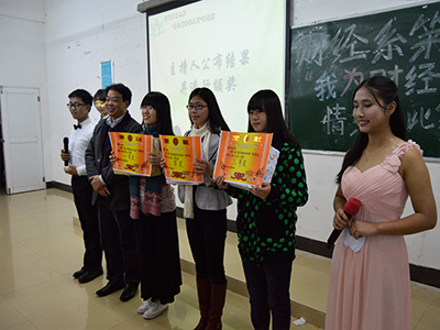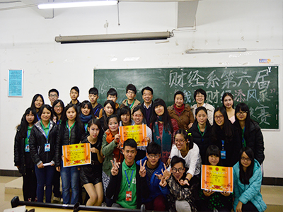 我系于18日晚举行了第六届“我为财经添风采”情景剧决赛,党总支书记李伟民﹑辅导员颜冬果老师、张海媛老师、陈平璋老师、谢睿老师、郑穗娜老师以及第五届冠、亚、季军代表等出席了本次大赛。