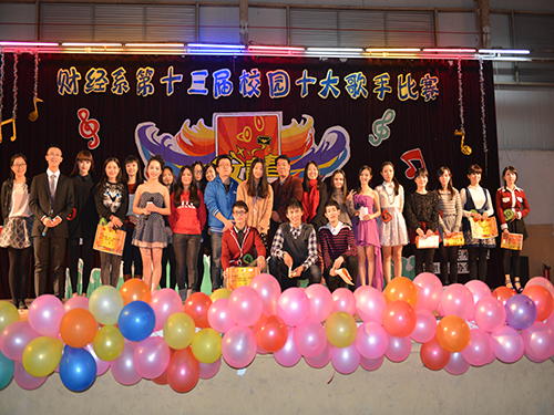 体育馆内灯火通明,人头攒动,比赛依次进行。选手们都发挥了最好的演唱水平,向观众们展示自己的风采。现场微博也及时跳出激励同学们的口号和祝福,在现场观众们的激情呐喊和助威声中,财管133班曹姗姗和国贸131班叶露露分别获得比赛的冠军和亚军,其他选手也在舞台上尽情展示,取得了较好的成绩,产生了2013年财经系十大歌手。给我们留下难忘的记忆和快乐!。
