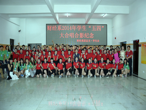 八个系部团总支.学生会组织的合唱队亮出精彩纷呈的合唱曲目。财经系60名同学身穿红色体恤衫,精神抖擞,首发出场以一首《红旗飘飘》震撼全场,自选歌曲《归航》唱得声情并茂,扣人心弦,更有女生指挥优美的身姿和娴熟的技巧征服了评委和观众,获得本次比赛三等奖。