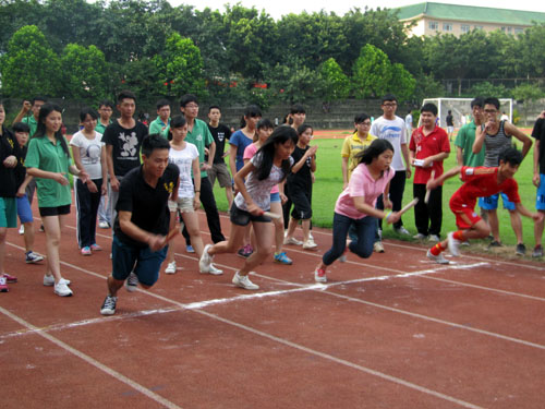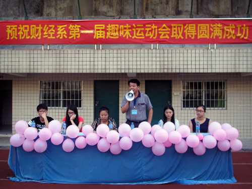 我系第一届趣味运动会于6月7日举行。党总支李伟民书记﹑团总支书记段妍君、辅导员老师谭俊强及大一新生300多人参加了运动会,新生各班15只代表队在体育场上各展风采,顽强拼搏。