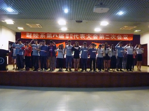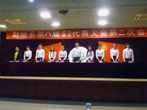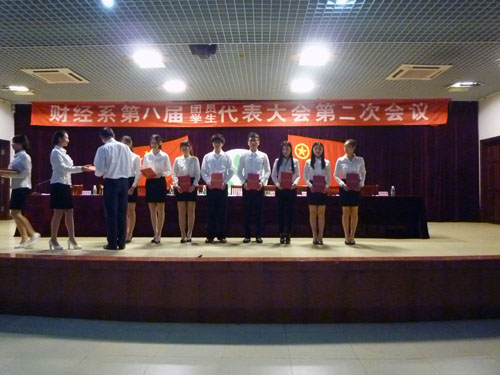 新一届的团总支与学生会干部们表示,在系部领导的带领下,团结互助,勇于探索,甘于奉献,共同谱写财经系团总支学生会的新篇章。