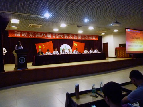 会议总结了上一届团总支和学生会一年的工作情况;通过第一阶段的民主推选,产生了新一届财经系团总支与学生会干部;刘亮主任代表系领导勉励学生干部在工作、学习和生活中,要起模范作用,为师生办实事、办好事、加强团结,积累经验,增强为财经系全体同学服务意识,确保系部学生工作的和谐、稳定。