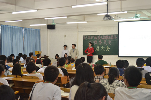 精彩的展片拉开了本次会议的序幕。第七届主编魏景斌和第八届主编钟宁分别进行了工作总结和工作展望,指导老师张海媛宣读干部任命名单,李书记在激昂的乐声中为干部授发聘书,各部门随后进行文件交接仪式。最后,黄部长为启航全体成员送上屈原的诗并与大家共勉:读书是一件清苦的事情,静心读书,潜心创作该是“启航”人一直坚持的追求;强调杂志内容的原创性,排版的规范性;不断提高杂志的采稿质量,多与其他高校进行文学联谊交流活动。第八届财经系《启航》杂志编辑委员会换届大会在一片热烈的掌声中圆满落幕,我们衷心希望新一届干部在院系领导的鼓励和支持下把《启航》打造成提升学校精神风貌,反映教育教学成果的精品。