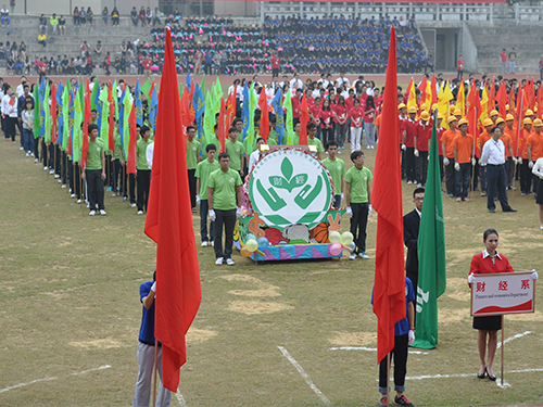 会计134班蔡小玲在200米中勇夺得第一名,会计135陈小萍在200米中夺得第二名,经济123班徐煜凯在110米跨栏和400米栏中夺得第二名,国贸101班侯俊鸿在三级跳远中夺得第三名;同时,财经系取得男子团体第四、女子团体第二名;并夺得团体总分第二名的优良成绩。