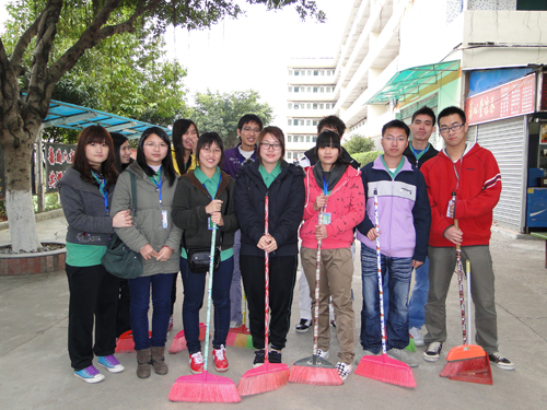 首先,院学生会与各系学生会的学雷锋活动成员进行了合照。然后财经系学生积极参与,带齐清洁工具,认真地在灯光篮球场周围进行清扫。