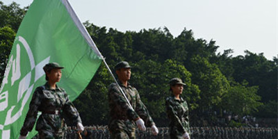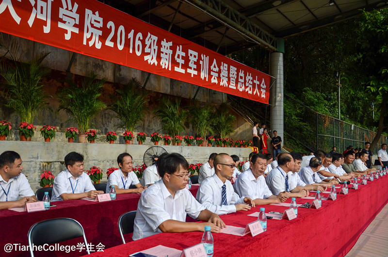 9月23日上午,广东技术师范学院天河学院2016级新生军训汇演在大足球场顺利落下帷幕。学校各级领导以及军团首长出席此次军训会操暨总结大会。