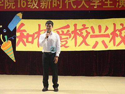 在“我的舞台,尽情表演,尽情展现”的鼓励下,16会计3班郑伟武选手声情并茂地表达了他是如何“爱上天院”。
