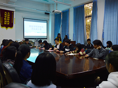 12月6日,我院在11栋会议室举行“财经文艺队”成立会,党总支书记谭飞、团总支书记颜冬果、团总支副书记兼学生会主席姚冰燕、副主席范文富、副主席陈静、秘书长丁铭涵、团总支文娱委员孙佳衡、团总支宣传委员麦泳禧以及财经文艺队成员参加此次会议。
