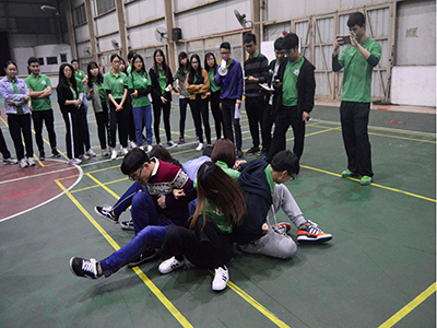 参加此次趣味运动会的团学成员被分成七个小组,小组成员共同参与5个游戏:默契跳绳、坐地起身、手拉手、衔纸杯传水、任务接力。默契跳绳中,各组成员不断尝试,寻找适合自己组员的跳绳方式,让成员们体会到了换位思考和相互配合的重要性。坐地起身活动中,各组在比赛过程中各有计划,每个成员都有明确的分工,体现了在工作中分工的意义。手拉手环节,各组成员早早的开始排练,每组成员都苦心研究能够最快解开的拉手方式,比赛过程中难免有些失误,但他们都能够在最快的时间内反思失误,重新来过。衔纸杯传水,不仅考验各组成员对各自站位的思考,还考验成员是否愿意“屈膝”,这也教会我们要礼让。任务接力活动中,各组成员都发挥出自己的所能,尽力一搏,只希望自己不要拖队伍的后腿。有竞争,就自然有输赢,有输赢就会有惩罚,各项活动之后的惩罚也是各具新意,现场总能传来阵阵笑声。