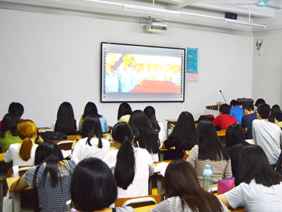 其次,全体团员观看《团员第一课》视频。通过视频的观看学习,团员们了解“共青团的创立”、“共青团的性质”、“推优入团的条件”、“团员的权利和义务”和“入团程序”等方面的知识。使同学们知道了团徽、团旗的含义,了解了团的历史、性质、奋斗目标、组织原则。生动、精心设计的视频讲解,使会议气氛活跃、紧凑,极大地调动大家的积极性。