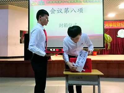 最后,在由我院党员代表对投票箱进行封箱后,第十二届共青团、学生代表大会第一阶段会议顺利落下帷幕,并预祝我院团总支和学生会第十二届共青团、学生代表大会第二阶段会议顺利召开。