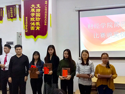 (通讯员 邓健明)12月5日下午,我院“就业创业宣传周”系列活动简历制作大赛颁奖环节在11栋会议室召开,出席活动嘉宾有我党总支书记谭飞、办公室主任段妍君、团总支书记黄秋芬、辅导员谢睿、谭智和、黄洁雅老师。