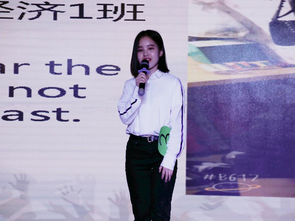 经过初赛、复赛的严格选拔,有九名选手脱颖而出进入决赛。主持人介绍完嘉宾后,比赛正式开始。第一环节是主题演讲,九位选手以《Receive positive energy》为主题依次进行演讲。赛中选手们精神饱满、感情充沛,他们用富有感染力的演讲打动在场的观众。第二环节是电影片段配音,选手们根据选取的片段进行配音。他们的配音新颖有趣,引来台下观众阵阵掌声。随后,由院文艺队蔡淑玲带来的歌曲《City of stars》缓解了现场紧张的气氛。经过激烈的比拼,17国贸3班林淑贞荣获本次比赛一等奖。最后,评委龚楚梅上台对本次比赛进行点评,她首先肯定了选手们的表现,也对选手们发音、语速的不足提出相应的建议。