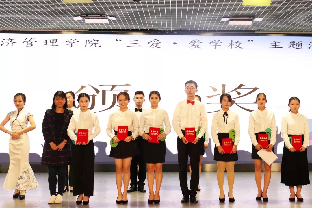 经过初赛和复赛的重重选拔,十名选手脱颖而出,站上了决赛的舞台。本次比赛共两个环节,第一环节是十名选手依次进行以“三爱·爱学校”为主题的演讲。随后的中场互动环节亦是精彩不断,被抽中的观众上场听歌识曲,竞猜歌名并赠送小礼品。第二环节中选手以自由组合方式为观众表演了幽默风趣的小品和相声。紧接着我院文艺队队员郑炎烨为现场带来了歌曲《安静》。比赛结束后,辅导员张宁对十位选手的表现做了一番精彩点评。最后,祝贺18会计3班彭文靖荣获此次比赛的冠军,18财管班梁倩瑜获得亚军,18会计3班杨志豪获得季军。