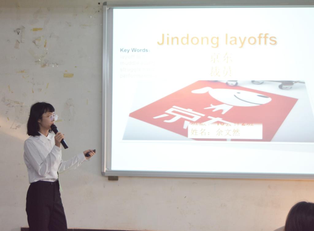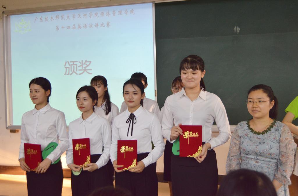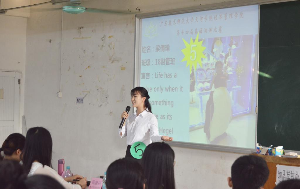 决赛分为主题演讲和个人演讲两个环节,七名选手用饱满的精神状态为观众呈现了一场听觉盛宴,其中18财管班梁倩瑜用流畅的英语对当下时事热点“童模被踢”进行分析,声情并茂,深入人心的演讲,感动了在场的所有听众,荣获本次比赛冠军。