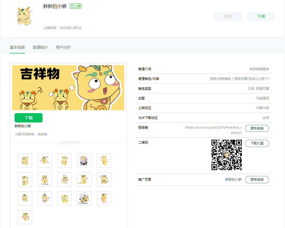 根据微信表情平台公众号的指示要求,吉祥物小貅第二期表情包系列上传作品有16个,涉及青年学子可能会用到的各种表情类型。