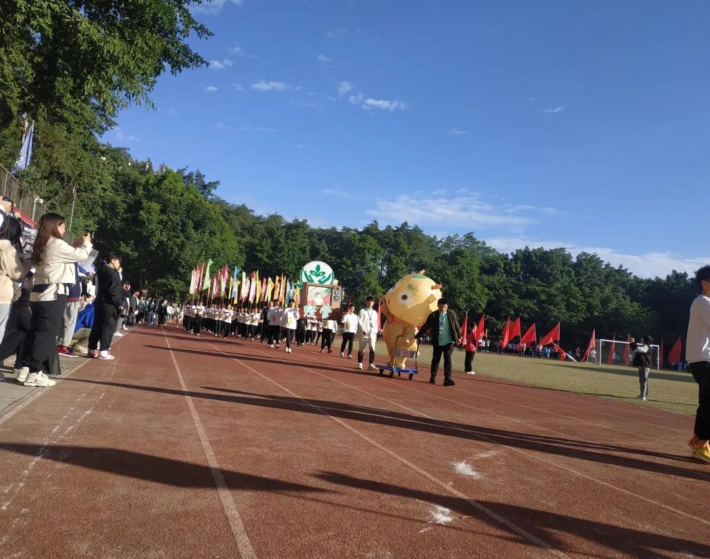 首先入场的是国旗护卫队,随后依次入场的是教师代表队、裁判员代表队、各学院代表方阵。suncitygroup太阳集团吉祥物“小貅”正带领着队列方阵昂首阔步、雄姿英发地走向主席台。整齐的步伐印证他们全力以赴,坚持到底的决心;响亮的口号是他们奋勇拼搏、一往无前的信念。相信suncitygroup太阳集团有小貅的加入,会越来越出色,现场气氛高涨,观众席掌声不断。