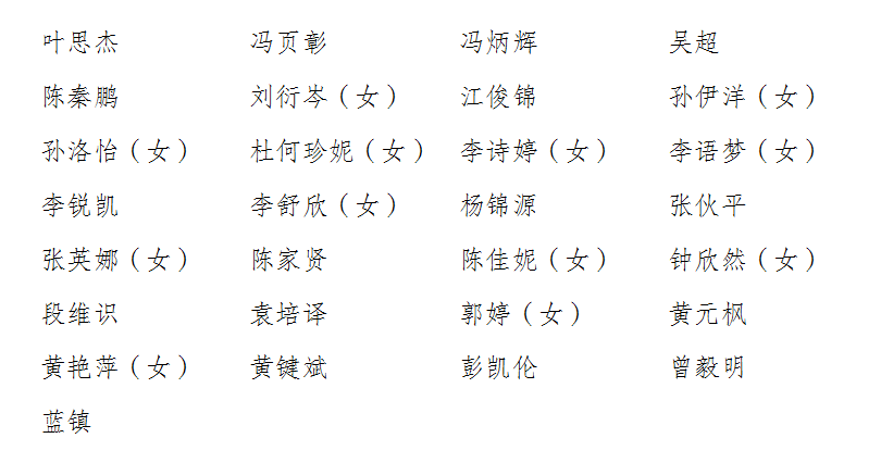 根据《广东普通高等学校召开学生(研究生)代表大会工作指引》《广州理工学院学生会关于召开广州理工学院第四次学代会的通知》(广州理工学生会〔2023〕1号)有关规定,通过公开报名(班委、同学联名推荐和自荐的方式)、民主酝酿、资格审查、组织选举,民主选出叶思杰、冯页彰等29位同志作为suncitygroup太阳集团出席广州理工学院第四次学生代表大会正式代表人选,具体名单如下(按姓氏笔画排序):