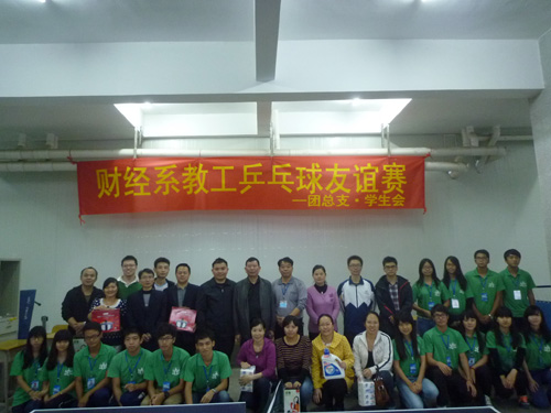 财经系有50多老师报名参加本次乒乓球赛,可谓全民动员,人人参与。经过第一轮的淘汰赛,男、女12强参加了11月14日的决赛。经过循环,辅导员何世福老师则斩获男子第一;黄亚兰老师则获得女子组第一;董长华等四位老师分获二、三名。赛场气氛热烈、有序,高潮迭起,一次次地进攻扣杀,精彩的接球推挡,现场掌声、呐喊助威声不断,赛场充满了欢笑和快乐。