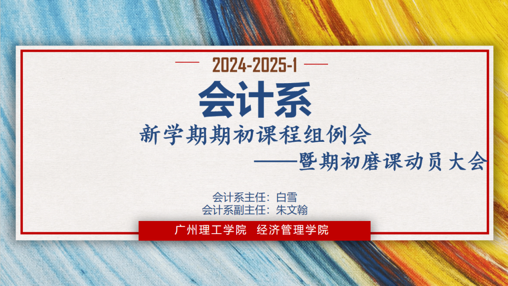 会议中,朱文翰副主任还带领大家共同学习了广州理工〔2024〕306号、广州理工教函〔2024〕8号、广州理工创函〔2024〕36号等学校最新发布的文件精神。并强调了文件中的重要内容和要求,结合会计系的实际情况进行了详细解读和说明。通过学习,大家进一步明确了新学期的教学工作目标和任务,为接下来的教学工作奠定了坚实基础。