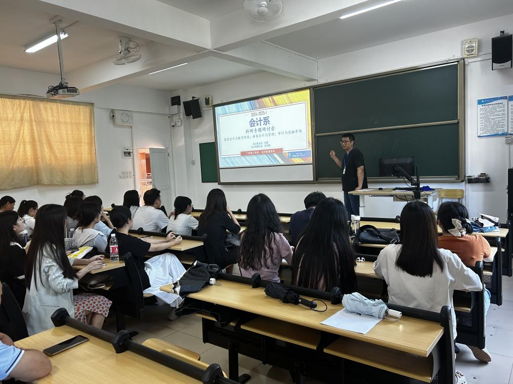 会议的第四项议题是鼓励教师积极参与校级科研活动。朱文翰副主任分享了近期学校对科研活动的支持政策,强调科研不仅是个人学术发展的重要途径,也是提升学院和系部的学术声誉至关重要。老师们普遍表示对科研活动的兴趣,但也有教师提出了时间和资源的挑战。最后,会议安排了即将举行的科研专题研讨会,讨论将围绕“数智会计与数字经济”、“财务会计与管理”、“审计与金融市场”三个方向进行。朱文翰副主任强调,希望通过此次研讨会,促进教师之间的学术交流,激发思维碰撞,推动科研的深入。与会老师们踊跃发言,分享自己的研究兴趣与现有成果,积极讨论与会议主题相关的热点问题与研究动态。朱文翰副主任对各位老师的热情参与表示感谢,并鼓励大家在研讨会上积极交流,争取在各自领域取得更多进展。