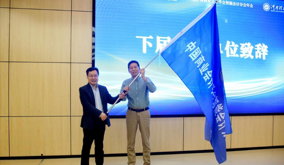 闭幕式由河南理工大学财经学院原院长梁丽娟教授主持。智能会计分会会长王爱国教授对大会进行了全面总结,高度评价了本次会议质量,对下一步智能会计分会的工作提出了明确要求,并对未来发展进行了展望。授旗湖北经济学院为下一届承办方,湖北经济学院会计学院院长胡伟教授发言,介绍了学院基本情况,表达了办好第三届年会的条件和信心。