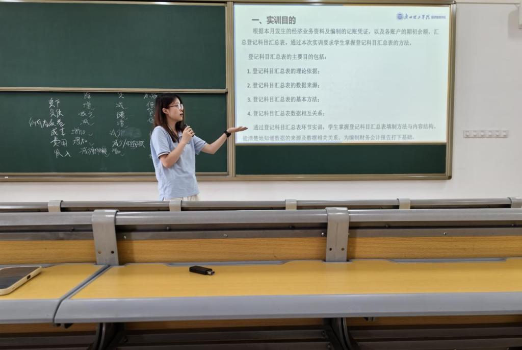 罗老师也围绕《基础会计》课内实训部分进行了磨课。罗老师提前收集学生实训中高频错误(如“摘要表述模糊”“金额借贷反向”“附件张数漏填”),通过PPT标注与讲解,让学生直观理解“合规性”与 “精准性”对会计工作的核心意义。罗老师提到课内实训作为学生将大学阶段所学专业知识进行综合运用的核心实践环节,对于培养学生的创新思维以及解决实际问题的能力至关重要。