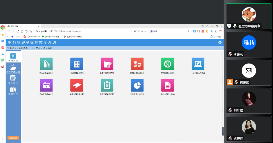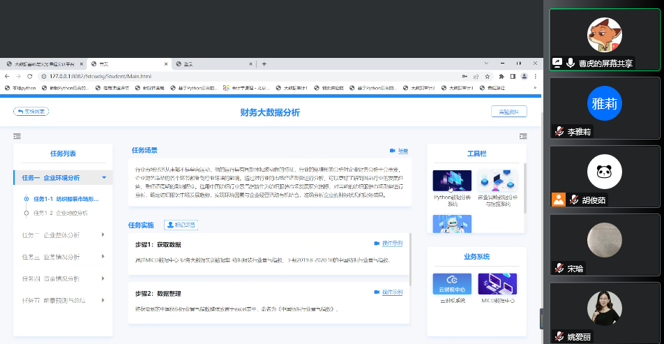 福思特公司工程师曹虎以本公司财会大数据系统的整体框架为切入点,以财务管理、大数据基础与实务两门课程为例,详细介绍了公司在“数智财会”领域的探索与研究成果,演示了财务管理课程实训平台,融合教与学的多种功能,能够实现财务管理理论与案例实操的迁移。