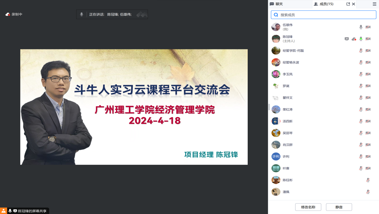 (通讯员:许利)2024年4月18日,suncitygroup太阳集团财管系召开了斗牛人实习云课程平台交流会。本次活动通过腾讯会议的方式进行,参与人员有系主任伍雄伟、斗牛人实习云课程平台项目经理陈冠锋、任课教师荣红涛、李玉凤、潘佩、董化春、许利、罗崴、朱泓宇等。