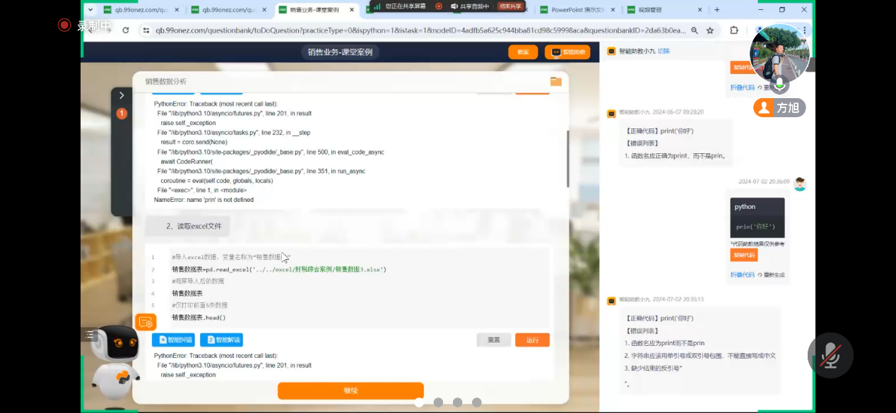 培训会上,方旭老师详细介绍了教学平台的主界面,并针对四个核心课程模块进行了深入讲解,包括Python基础、数据分析及可视化、Python办公自动化和财务数据案例实训。
