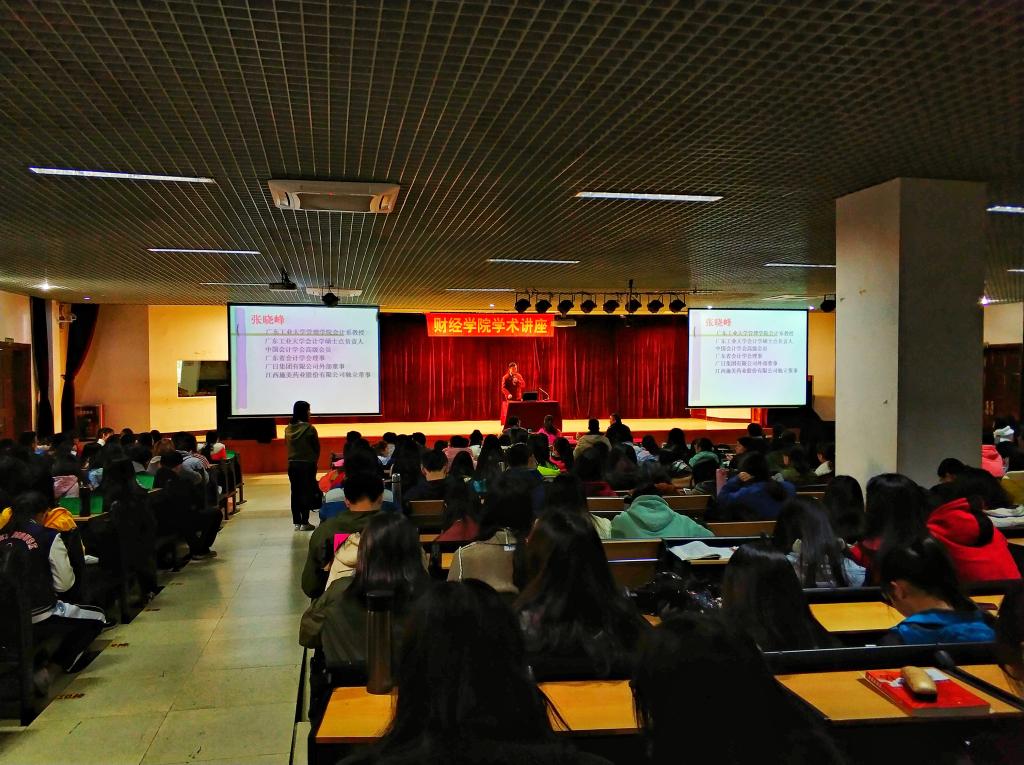 (通讯员李美珍)12月19日下午,我院财务管理系邀请广东工业大学管理学院教授、硕士导师张晓峰为我院财务管理、会计学专业的学生进行讲学,副院长张志红、财务管理系主任李美珍、实验中心副主任张建龙老师参加了本次讲座。