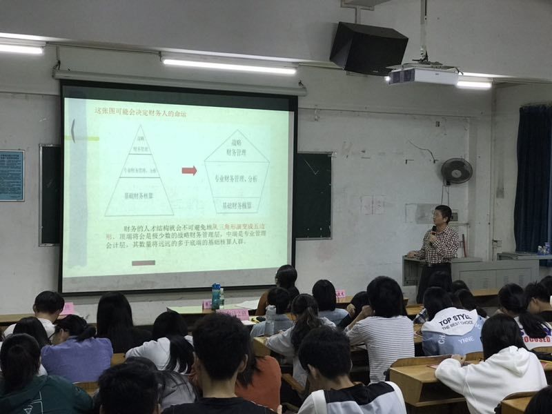 (通讯员 李美珍)11月8日下午在4栋101,财务管理系邀请广东工业大学原会计系主任、管理学院教授、硕士导师张晓峰为我院财务管理、会计学专业的学生进行讲学,财务管理系主任李美珍、实验中心副主任张建龙老师参加了本次讲座。