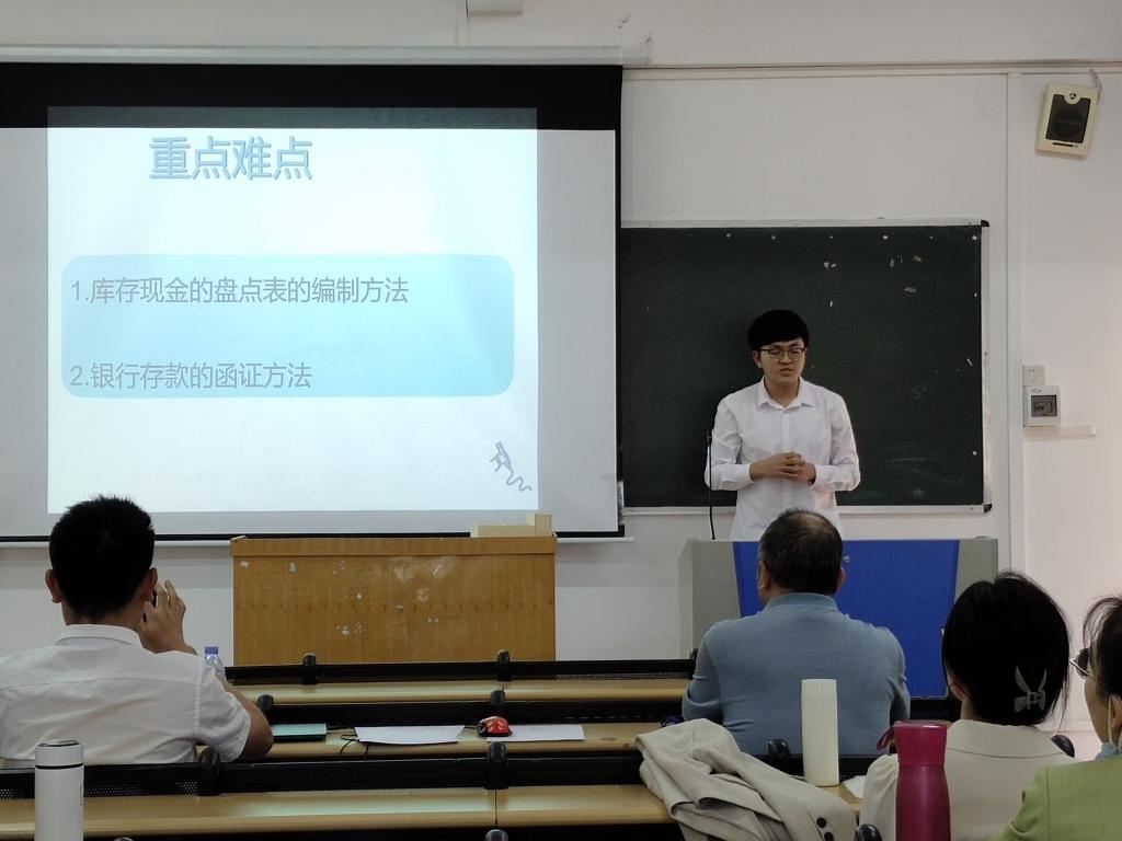 宋瑜老师讲授的是《审计学》中的货币资金审计。他结合自己在国企做审计的工作经验,用案例丰富内容,将枯燥的审计学课讲的有声有色,PPT中的关键词用不同颜色加以重点标示,并给予了强调和解释。肖庆老师讲授的是《财务管理》中的现金管理。对于现金管理模型以及公式的推导、说明,非常细致、耐心,案例讲解紧扣理论知识,同时,PPT设计很好,普通话标准,得到了老师们的一致认可。对于两位老师的讲课,财务管理系各位老师从教态站位、语速语调,到课程思政、课程特点、教学方法、教学设计,再到案例选取、公式推导、PPT美化等方面都进行了热烈的讨论。