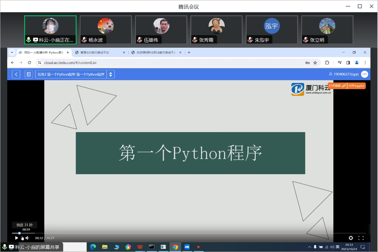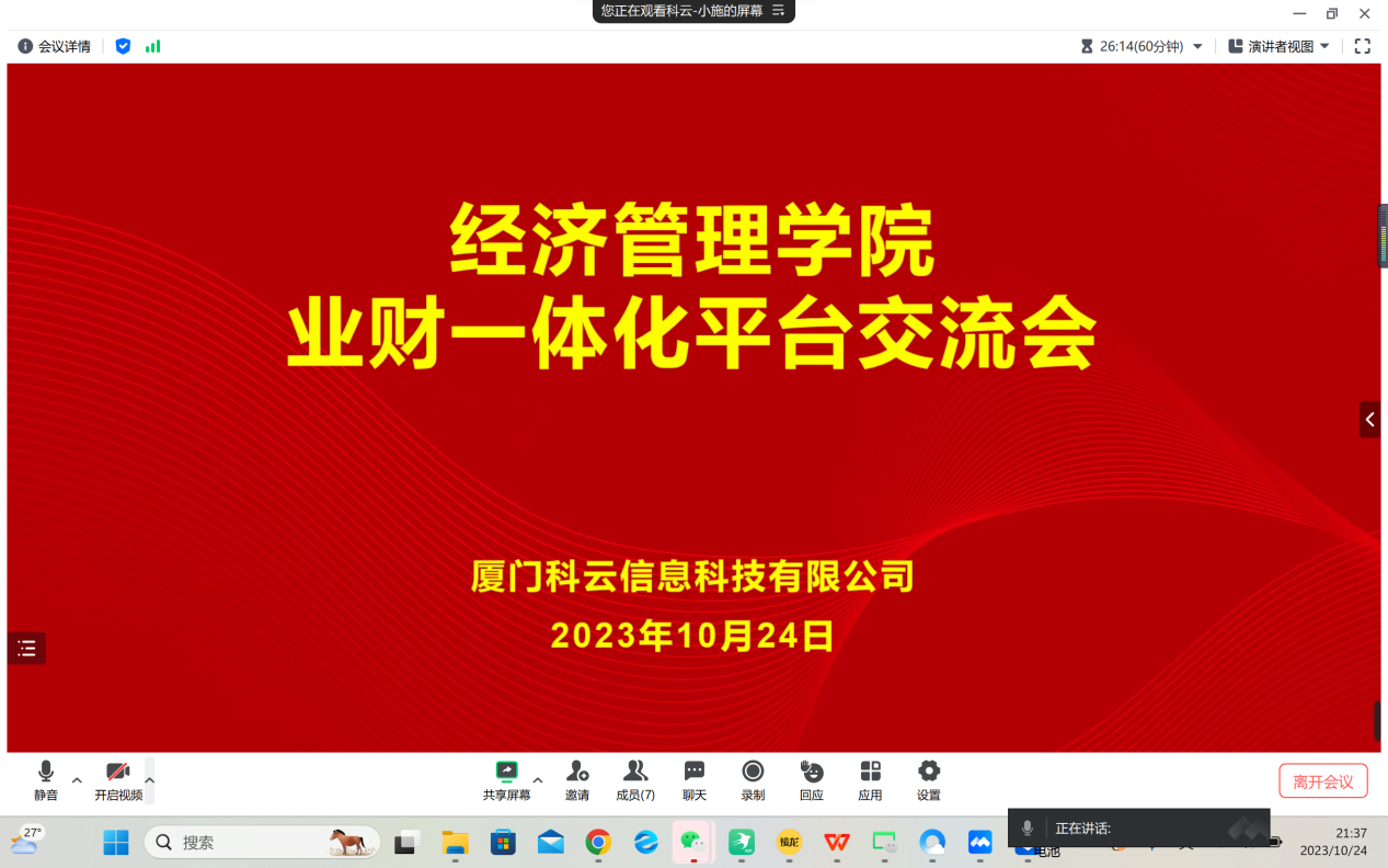 (通讯员:朱泓宇)2023年10月24日,广州理工学院suncitygroup太阳集团邀请厦门科云信息科技有限公司施鹏翔老师进行了一场结合业财一体化的财会职业能力养成平台的学习与使用,以及财务大数据Python在财务领域的平台和应用方法。本次会议由财管系主任伍雄伟主持,财管系教师全员参与。