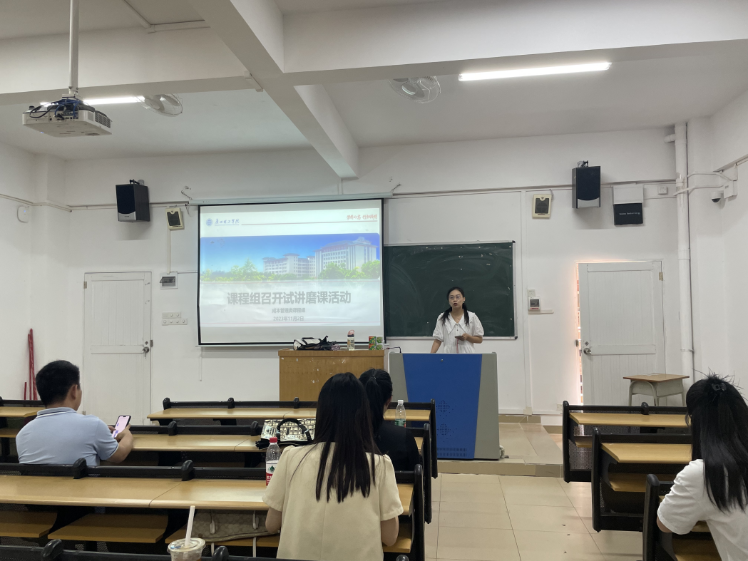 (通讯员:陈钊慧)为促使我院专任教师在工作中做到将教学评价与教学紧密结合,进一步提高青年教师的课堂教学水平,2023年11月2日下午,成本管理类课程组在7-208召开磨课研讨会,会议由成本管理类课程组组长李雪老师主持,由赵婧汝老师和高可茵老师授课,其余老师到场观摩。