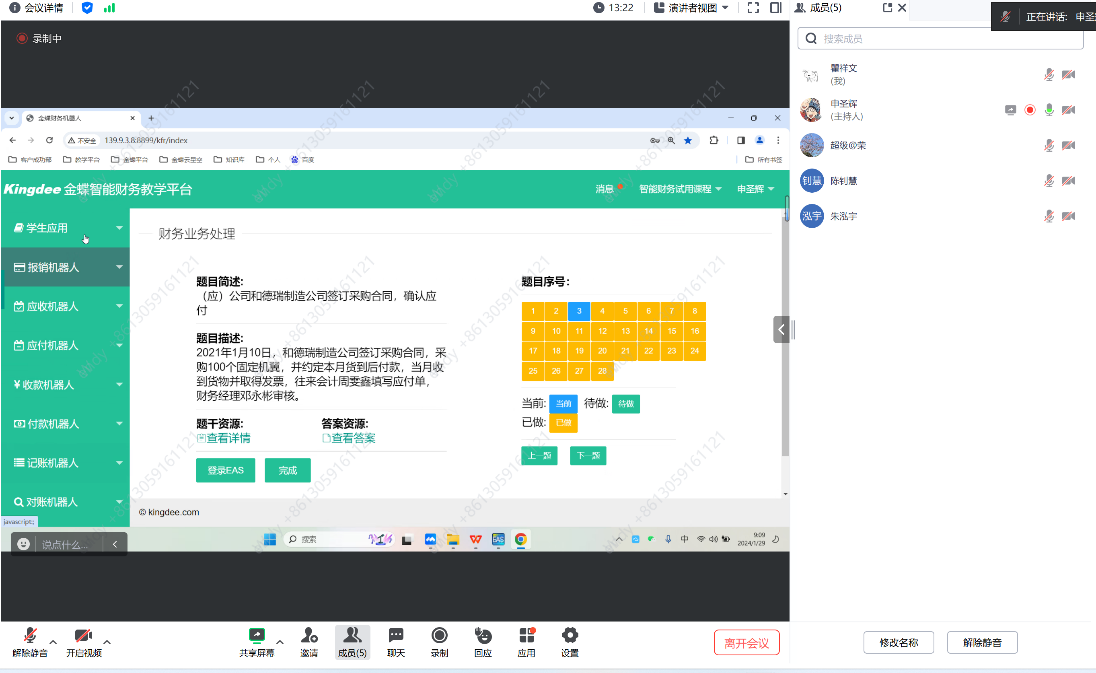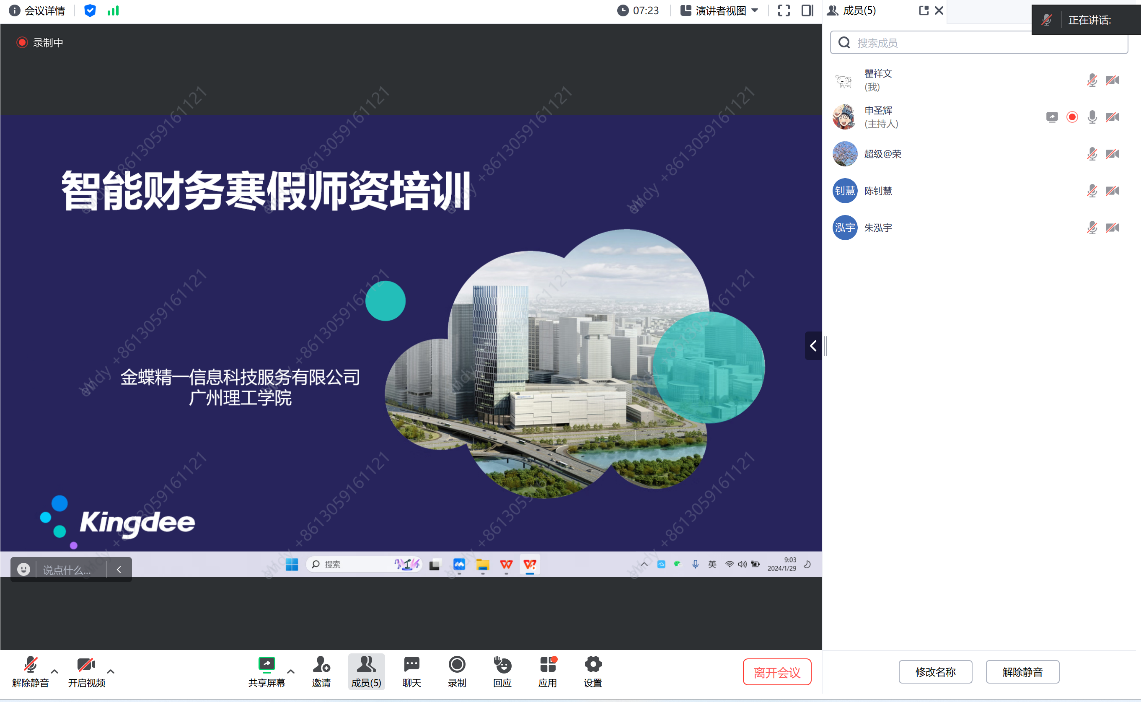 (通讯员:瞿祥文)2024年1月29日,金蝶公司和广州理工学院经管学院成功举办了一场精彩的智能财务寒假师资培训,旨在提升老师们在金蝶EAS系统和智能财务教学平台的专业知识与应用水平。参加培训的教师包括财管系伍雄伟主任、瞿祥文、朱泓宇、陈钊慧等老师,金蝶公司申圣辉老师为本次培训提供专业指导。