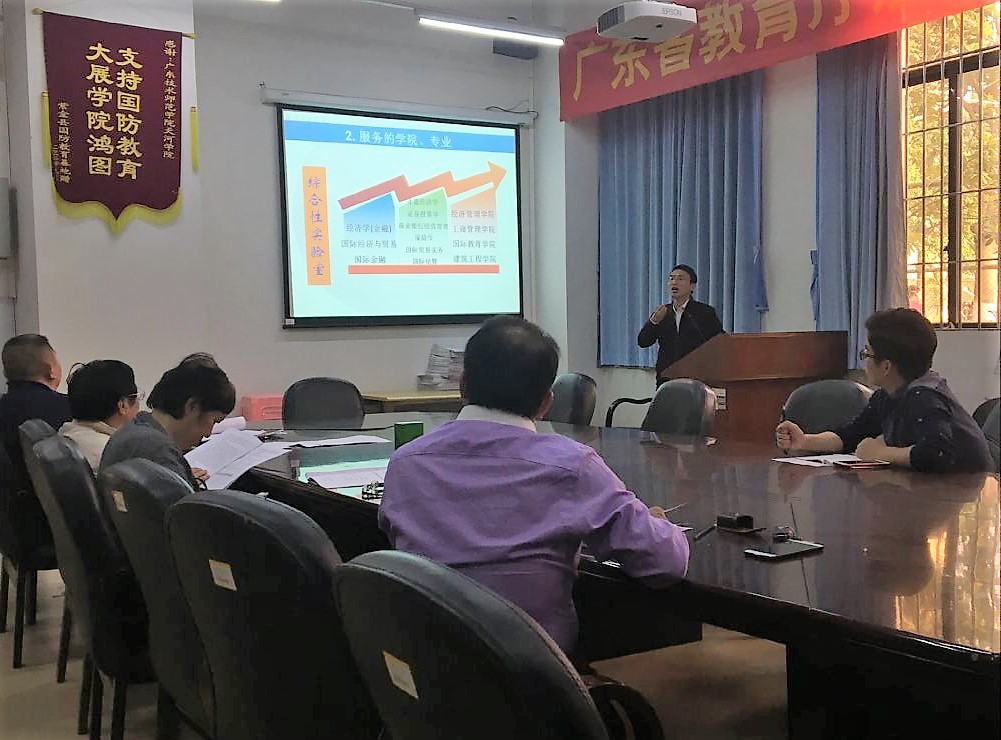 陈天勇副院长就我院2018年实验室建设项目进行汇报。陈天勇副院长从实验室建设背景及意义、服务专业教学、实验课程开设、场地设备、预期效益五个方面对金融综合实验室新建项目、财务管理综合实验室升级改造项目进行了详细汇报,向专家们介绍了实验室建设具体方案。汇报中陈天勇副院长讲到,此次实验室建设项目,立足学校转型转设,结合了我院教学实际需要,针对经济类大学科和财务管理专业实验条件不足,原有实验室设备陈旧,不足以满足现有实验教学需要等情况,从学院实验室建设规划出发,秉着“解决急需、保障教学、兼顾学科发展”的原则,充分利用现有资源进行建设。